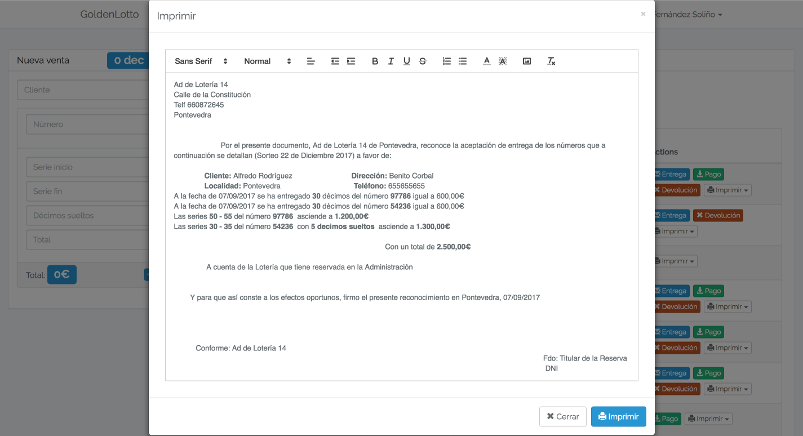 Ahorra tiempo a la hora de gestionar las reservas, entregas y pagos de décimos de tus clientes de manera fácil e intuitiva. Olvídate de documentos de cálculo, papeles o soluciones anticuadas, ten toda la información disponible desde cualquier lugar.